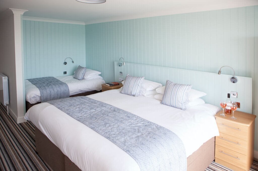 Enjoy the indoor and outdoor pools and hot tubs, as well as a sauna. There’s also indoor games, and outdoor play area and an indoor toddler play area. Enjoy sunbathing in the gardens with those fabulous views or grab a bike and explore the island.